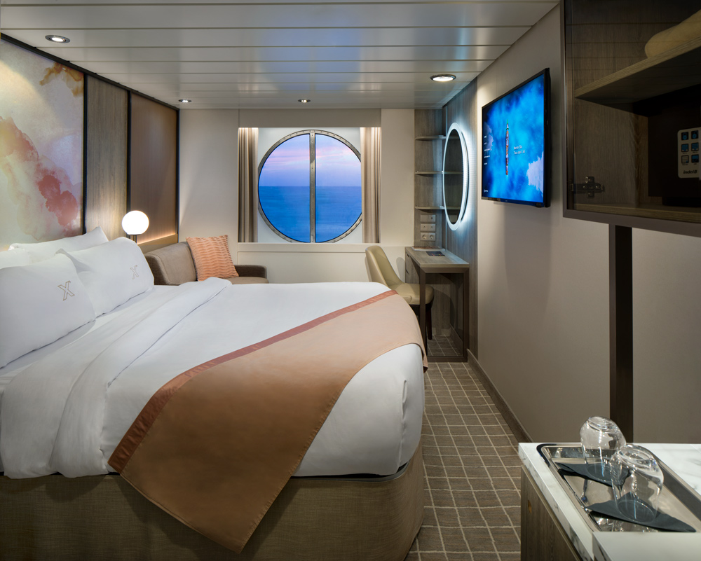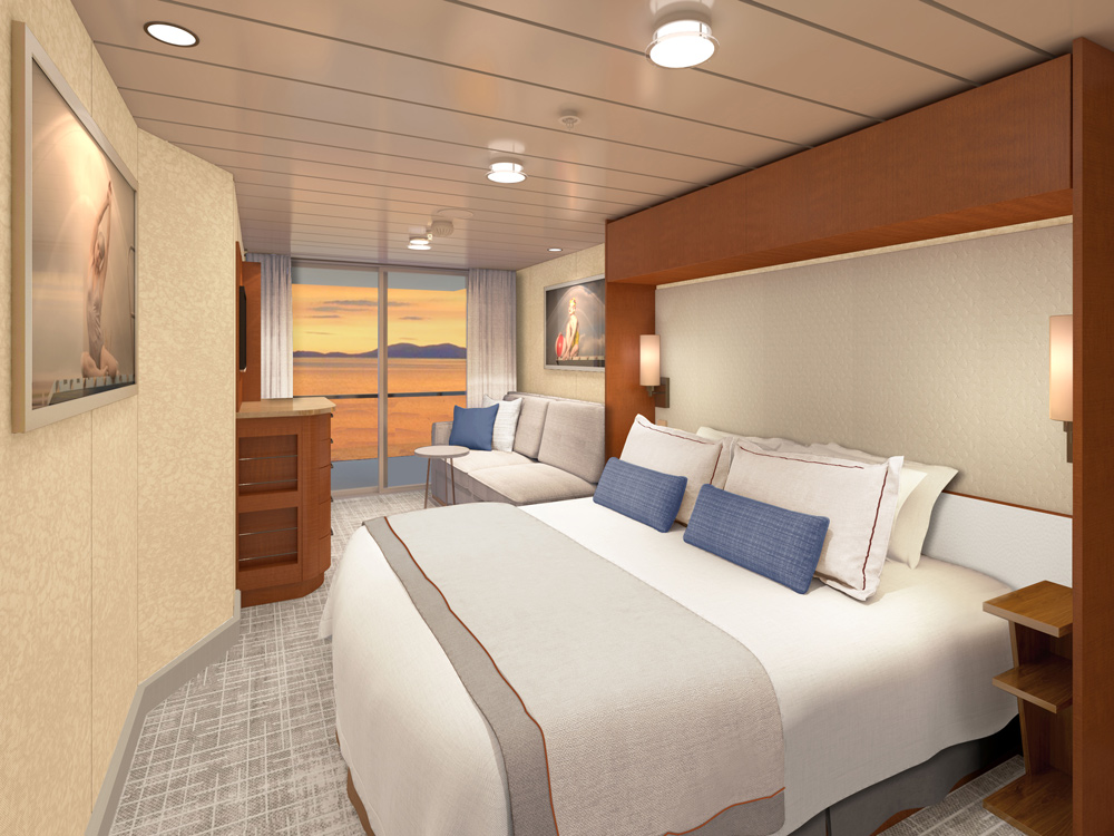 • Interactive flat screen TV with multiple channels and interactive mode that allows you to check your bill, make shore excursion reservations, order room service, watch shows and movies on demand*